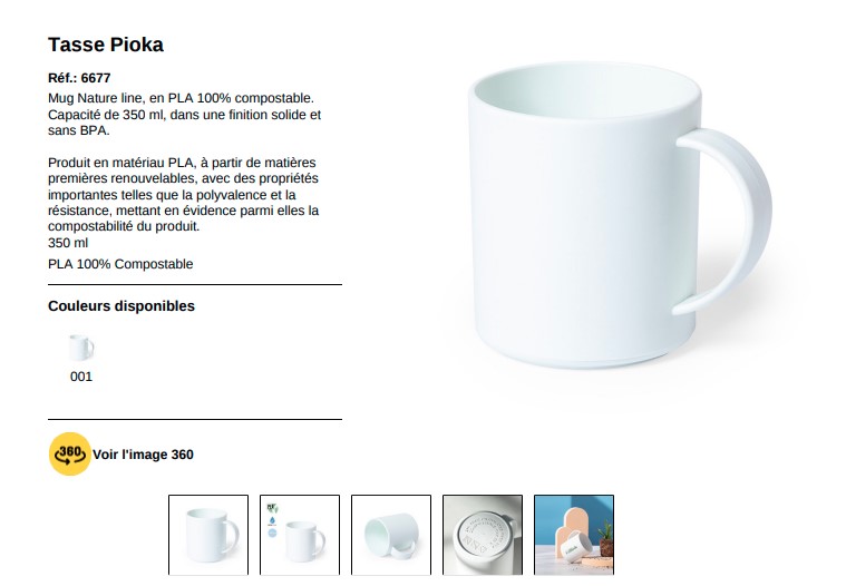 Mug PIOKA 350ml (Impression sur 1 zone - Quadrichromie) Lot de 50 pièces