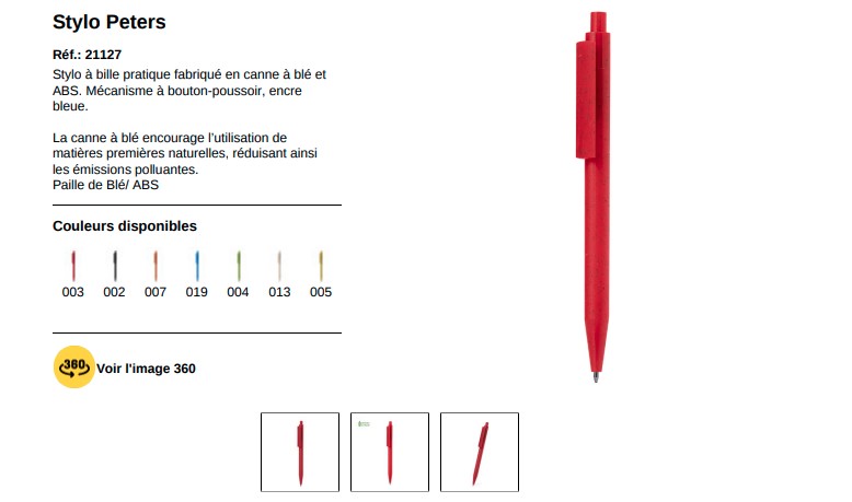 Stylo à bille PETERS (Impression sur 2 zones - Quadrichromie) Lot de 25 pièces